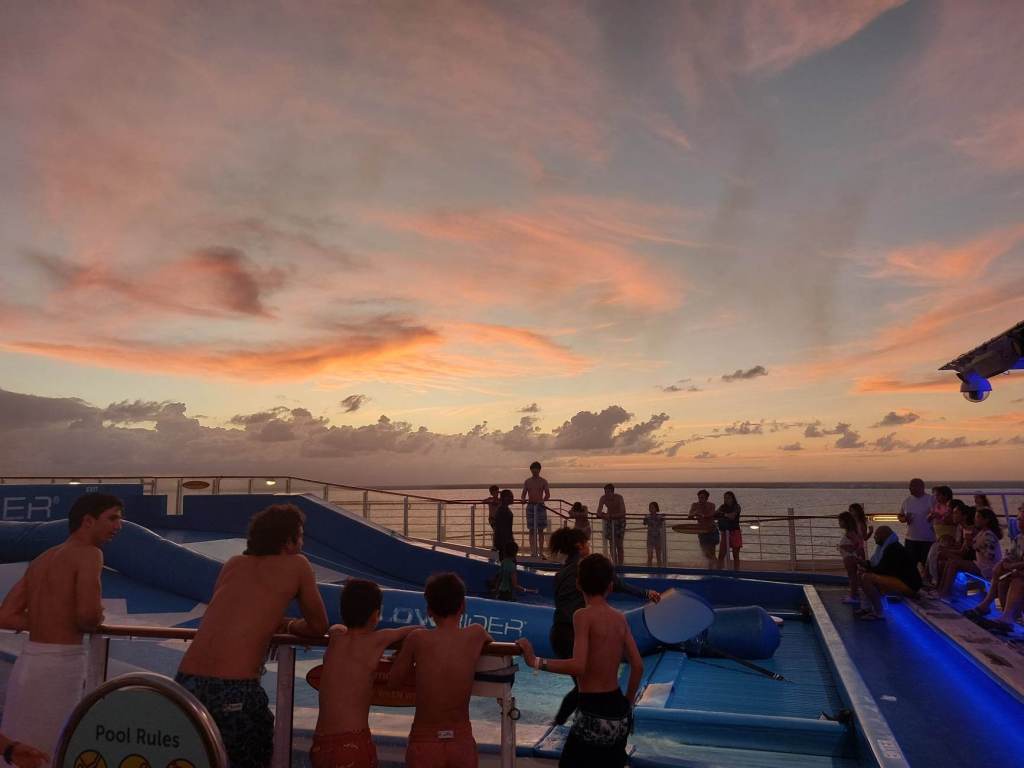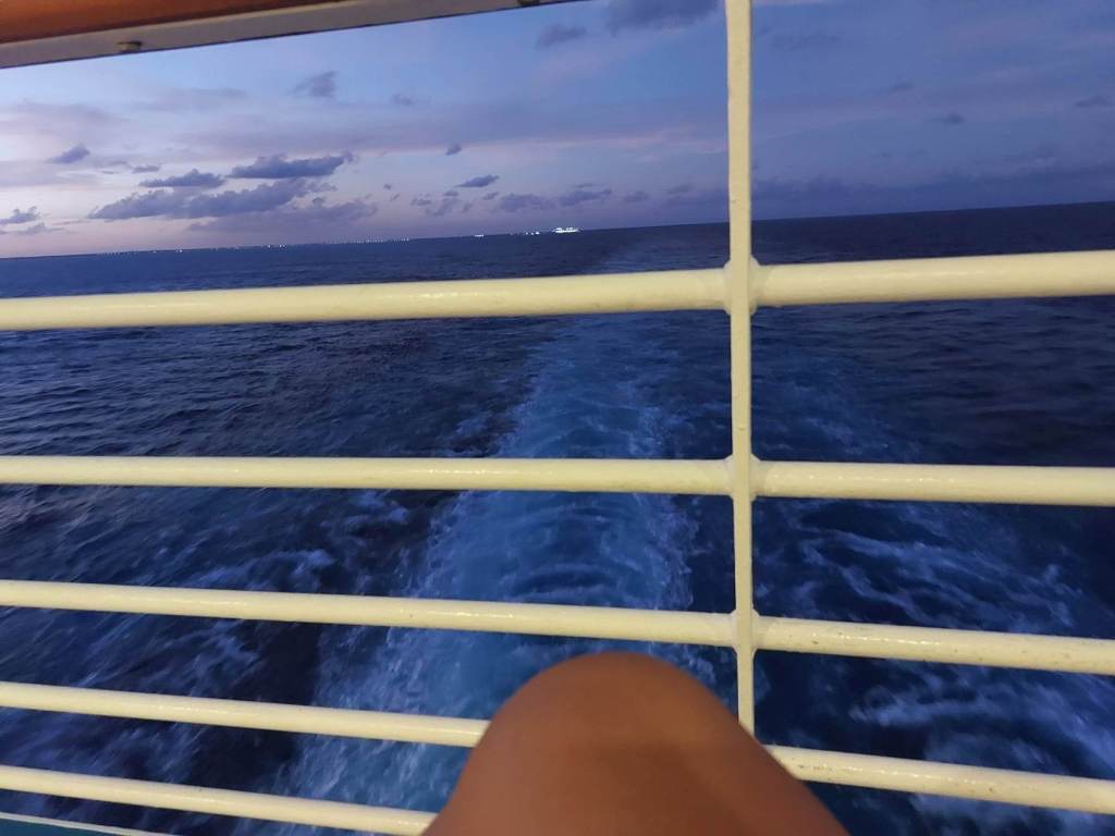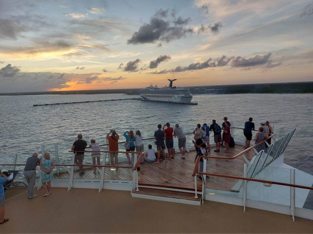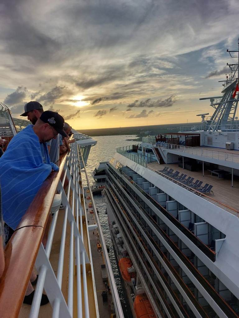 Două nave imense, aflate la mai puțin de 8 m una de cealaltă, ALLURE OF THE SEA de la compania Royal Caraibbean și BEYOND de la compania Celebrity își oglindeau una în cealaltă măreția și în egală măsură onorau măreția OMULUI. Eu așa am simțit.